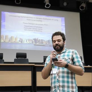 Dr. Thales Papagiannakopoulos (NYU, EUA). Se tivesse que soletrar o nome do palestrante internacional no famoso programa de tv, o único que teria chance de ser bem sucedido seria o Prof. Gustavo Dubois (UFRJ), seu ex-aluno brasileiro. Sorte que o pesquisador grego liberou o codinome “Papa G.” para todas as ocasiōes.
